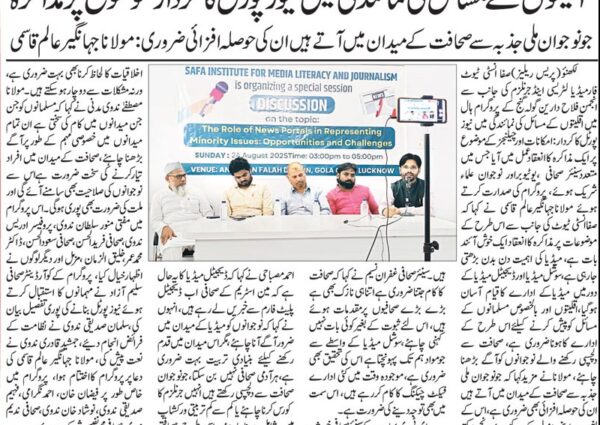 لکھنؤ: صفا انسٹی ٹیوٹ فار میڈیا لٹریسی اینڈ جرنلزم کی آج گولہ گنج میں میٹنگ ہوئی جس میں “دیجیٹل کنٹینٹ